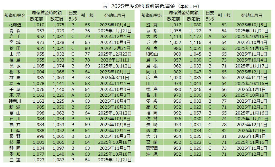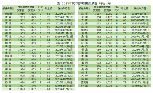[2]2025年度の地域別最低賃金額と発効日