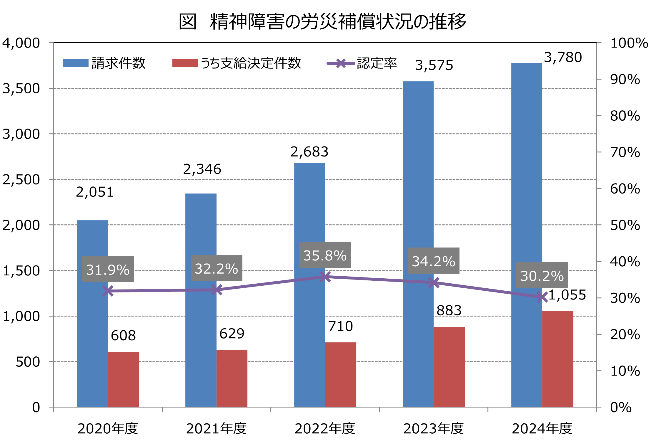 従業員がメンタルヘルス疾患を発症し、欠勤や休職をするケースが増加しています。その中には、仕事による強いストレスがその原因となっている事例もあるようです。2025年6月に公表された厚生労働省の資料によると、精神障害を理由とした労災の請求件数、そして支給決定件数が大幅に増加しています。そこで以下では、公表された資料の内容を確認した上で、企業に求められる対策について見ていきます。